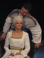 O JUNAŠKI PETODEJANKI V VERZIH Prva misel, ki mi je padla na pamet v trenutku, ko sem sedel za računalnik, da napišem odstavek ali dva o paradni gledališki produkciji letošnje sezone v KUD-u Dolsko, je : če so nekoč babice znale iz nekaj bornih sestavin narediti nadvse okusno jed, kjer je bistvena začimba bila ljubezen, a tudi iznajdljivost, potem je tudi ta predstava, predstava o plemenitem mečevalcu in pesniku Cyranoju de Bergeracu, prav to: do potankosti izrezbarjena slika, ki s skopimi materialnimi sredstvi in pogumnimi umetniškimi posegi ponuja nekaj, kar smo v teatru že skoraj pozabili: pristnobesnečim ritmom pred gledalca metala nedoločene, ad hoc sklepane kolaže kričečih podob. Nasprotno, njen namen je, da gledalcu sporoča, njen namen je, da z gledalcem vzpostavi dialog. Junak Rostandove komedije je eden tistih maloštevilnih, a vedno precej nesrečnih ljudi, ki jim je bila dodeljena visoka čast in breme, da so boljši in pametnejši od svojih sodobnikov. Znano pa je: višje, kot glava takšnega človeka sega iz množice, več udarcev bo prejela. V tej “herojski komediji” pred nami stoji neprištevno pogumen Gaskonjec, čigar jezik je oster kot meč, meč pa natančen kot jezik. Cyrano je samosvoj veseljak, ki brez milosti tepta prostaštvo in neumnost, a zato toliko bolj ljubi ljudi. Z lahkoto odpravlja trne v peti, z eleganco ustavlja nasprotnike. Le prek nečesa nikakor ne more: svojega velikega nosu. Ta mu, bolj kot vsi nasprotniki, brani da zakoraka naproti osebni sreči, ki se skriva v nežnem, krhkem liku lepe Roksane. In ker nesreča nikoli ne pride sama, se slednja noro zaljubi v Kristjana, kadeta v Cyranojevi četi. Prepričan, da je ljubezen med njima nemogoča, se Cyrano odloči, da Kristjanu s svojimi poetskimi bravurami pomaga do srca Roksane. Tako nastane vznemirljiv “ljubezenski trikotnik”, ki je v svoji pojavnosti nadvse zabaven in smešen, v srži pa plemenito tragičen.